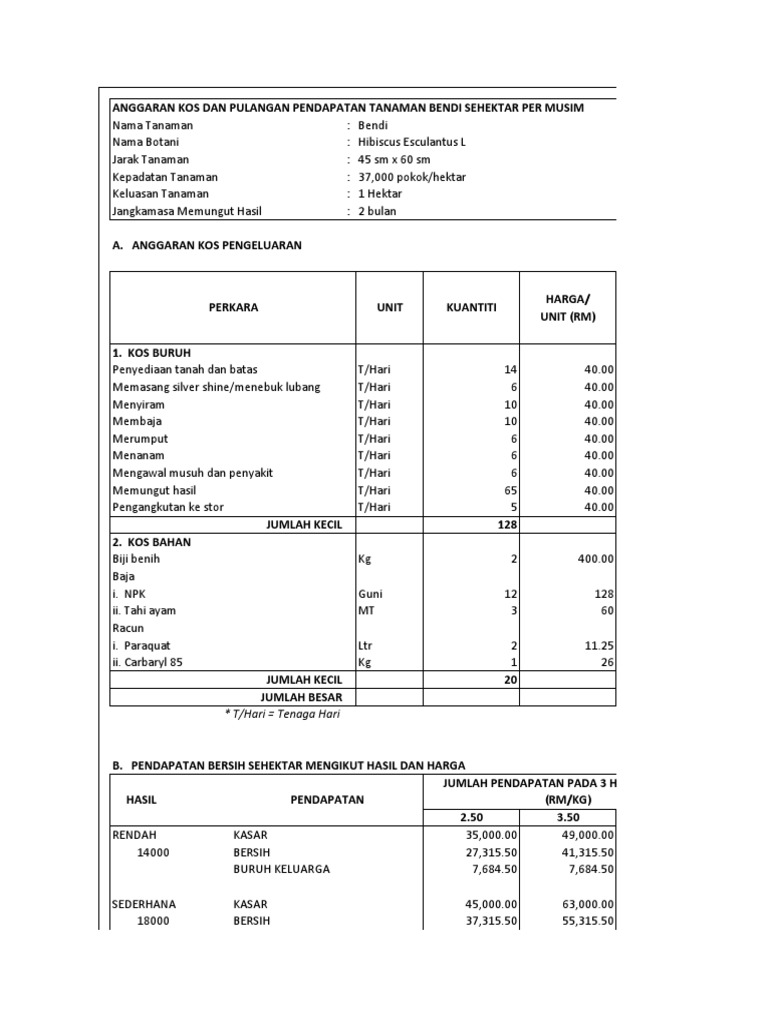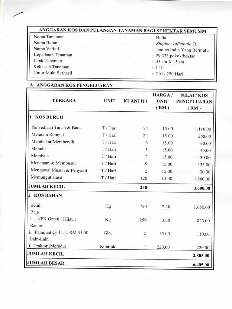 Anggaran Kos Pengeluaran Untuk Tanaman Halia Pdf