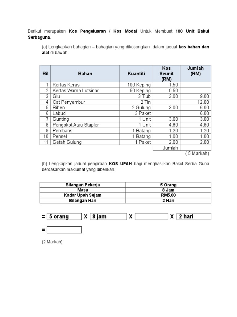 Pengiraan Kos Bahan Latihan Rbt Ting 1 Pdf
